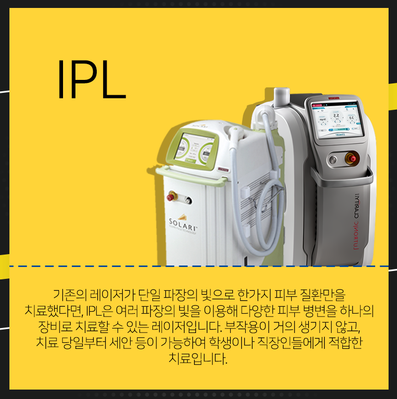 제거하기 위해 다파장의 IPL 시술도 함께 적용하여 더욱 만족스러운 결과를 얻을 수 있도록