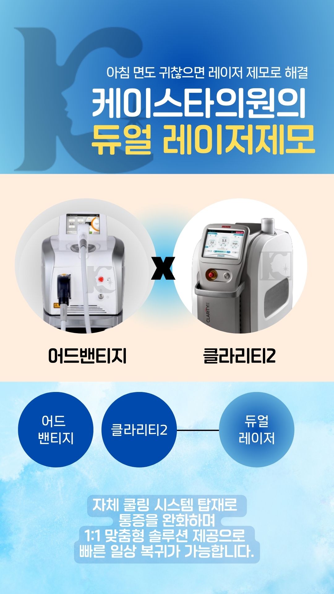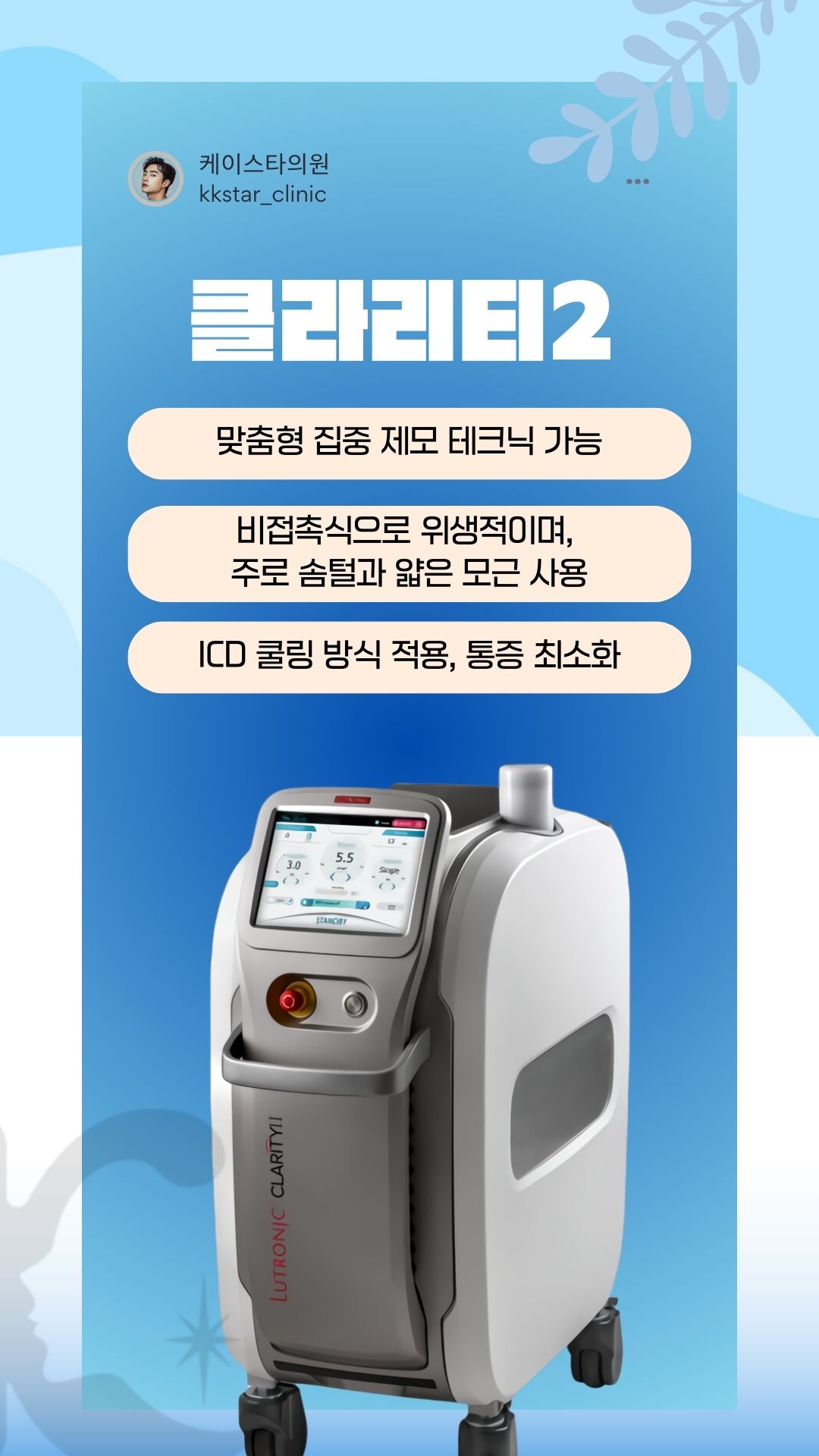 또한, 최신 냉각 시스템이 적용된 장비를 사용하여 시술 중 통증을 최소화하며, 민감한 피부를 가진 분들도 걱정 없이 받을 수 있도록 최적의 환경을 제공합니다.