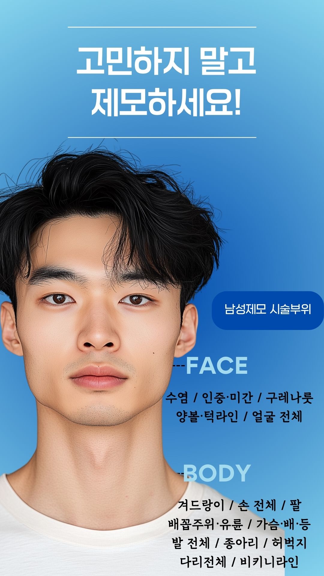각자의 피부 상태와 수염의 특성을 평가하여 가장 적합한 방법으로 제모 계획을 세웁니다.