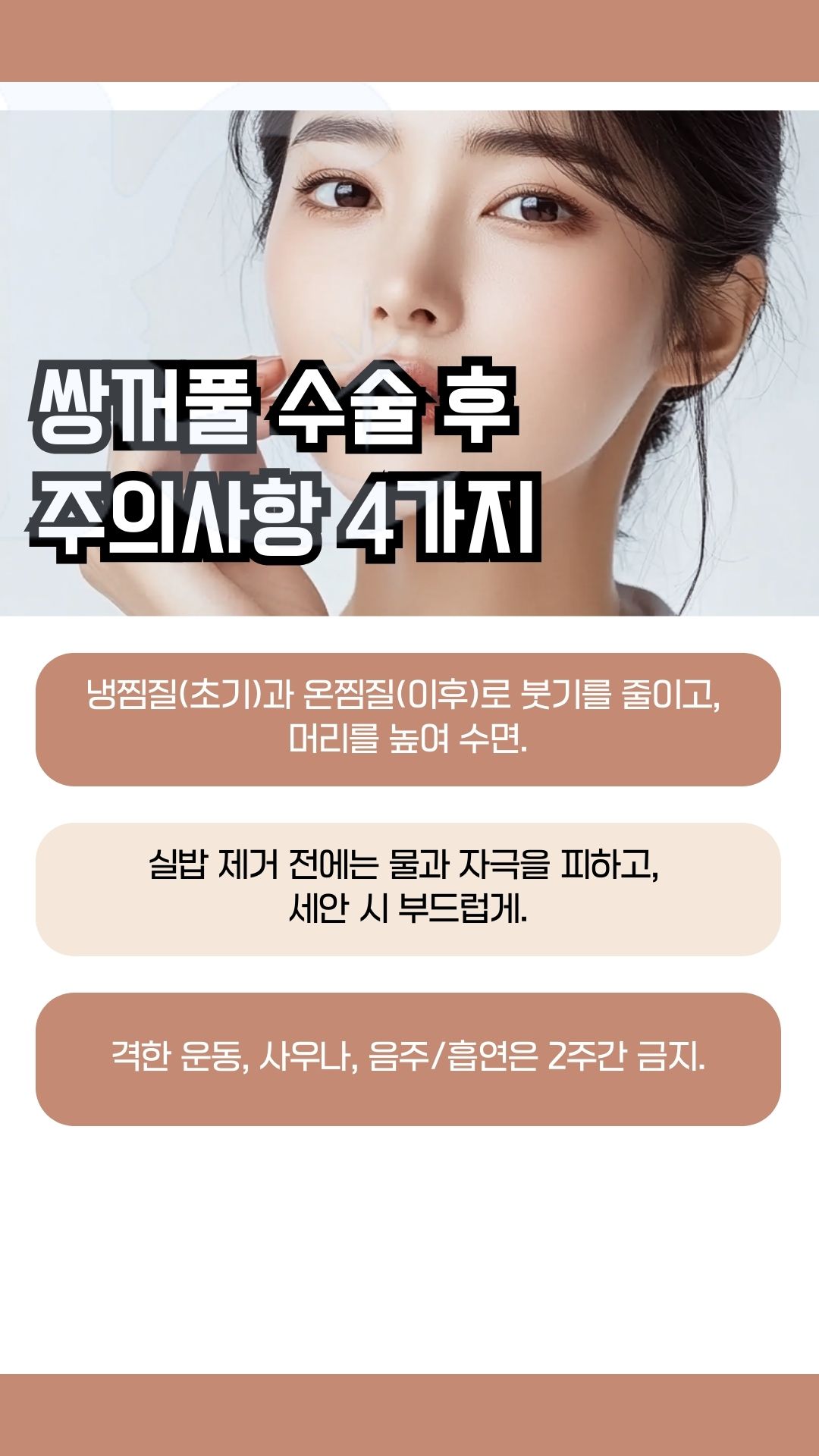 ✔ 수술 후 48시간 동안 냉찜질을 하여 붓기와 멍을 줄이는 것이 중요합니다.