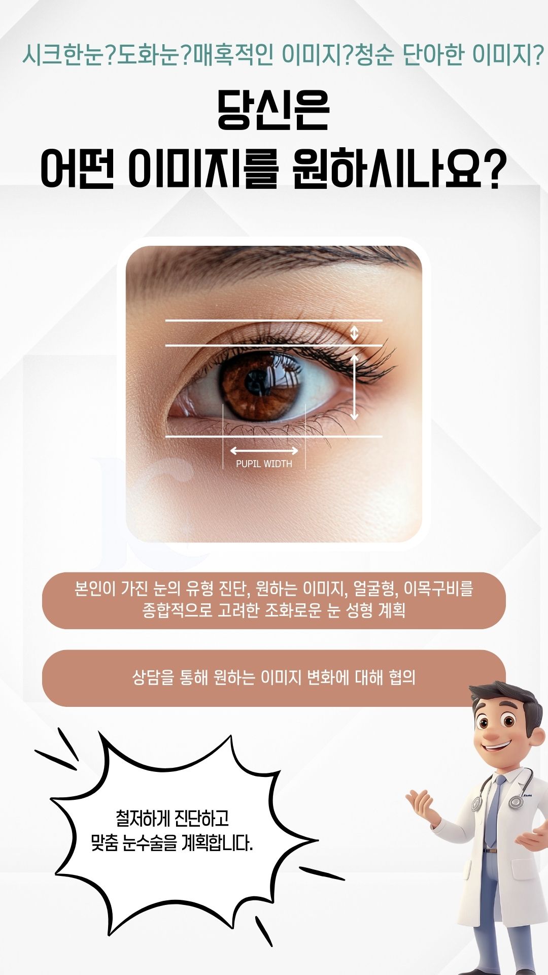 눈은 얼굴 전체의 인상을 결정하는 중요한 요소로, 작은 변화만으로도 이미지가 크게 달라질 수 있습니다.