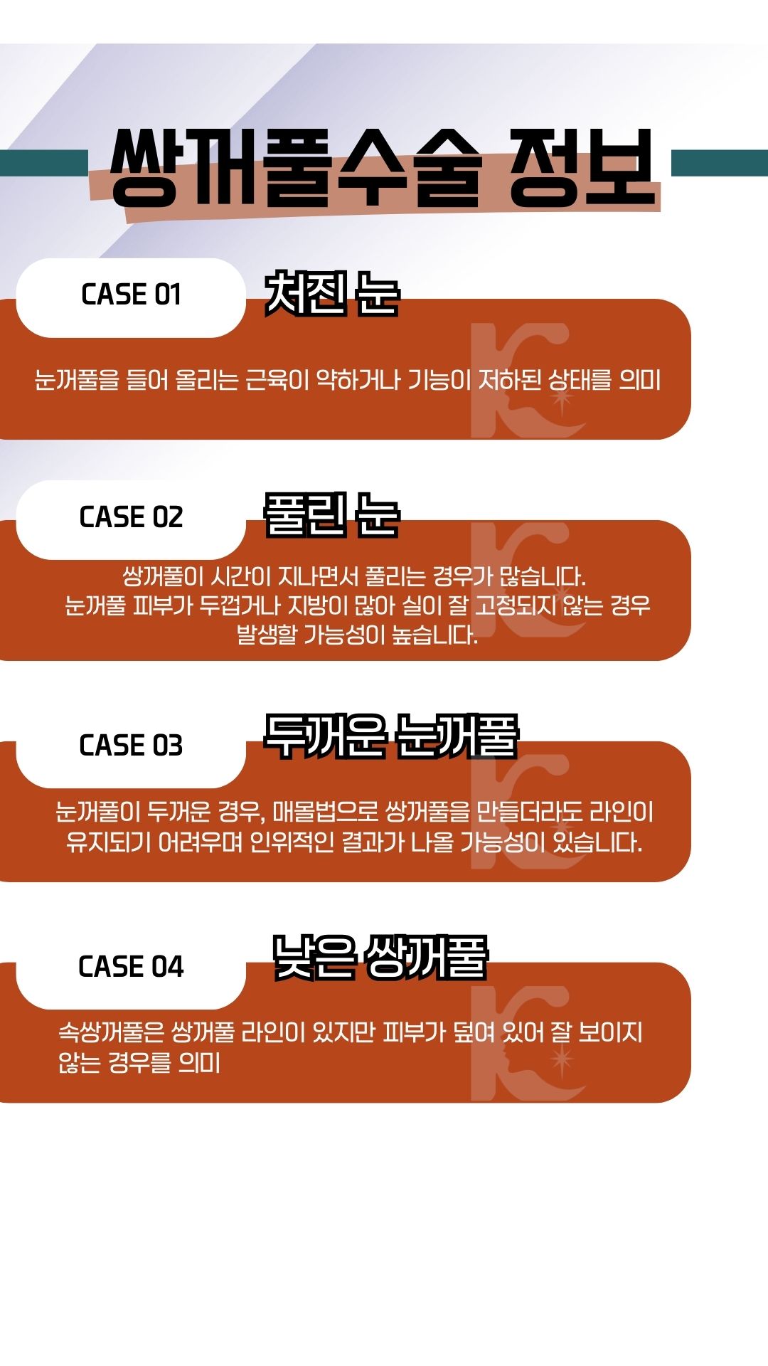 눈꺼풀 피부가 두껍거나 지방이 많은 경우 적합한 방식입니다.