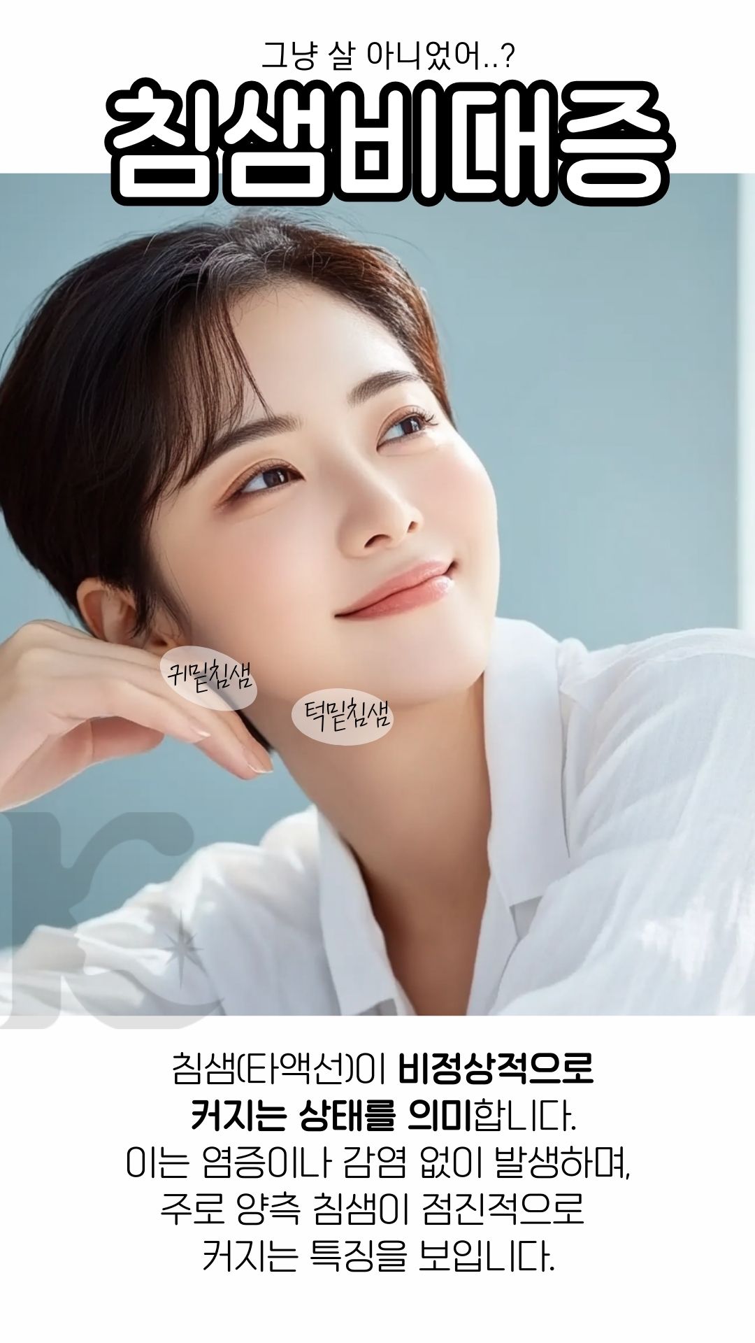 이러한 요인들이 복합적으로 작용하면 침샘이 점점 커지면서 얼굴형이 변하고, 턱 아래쪽이 넓어 보일 수 있습니다.