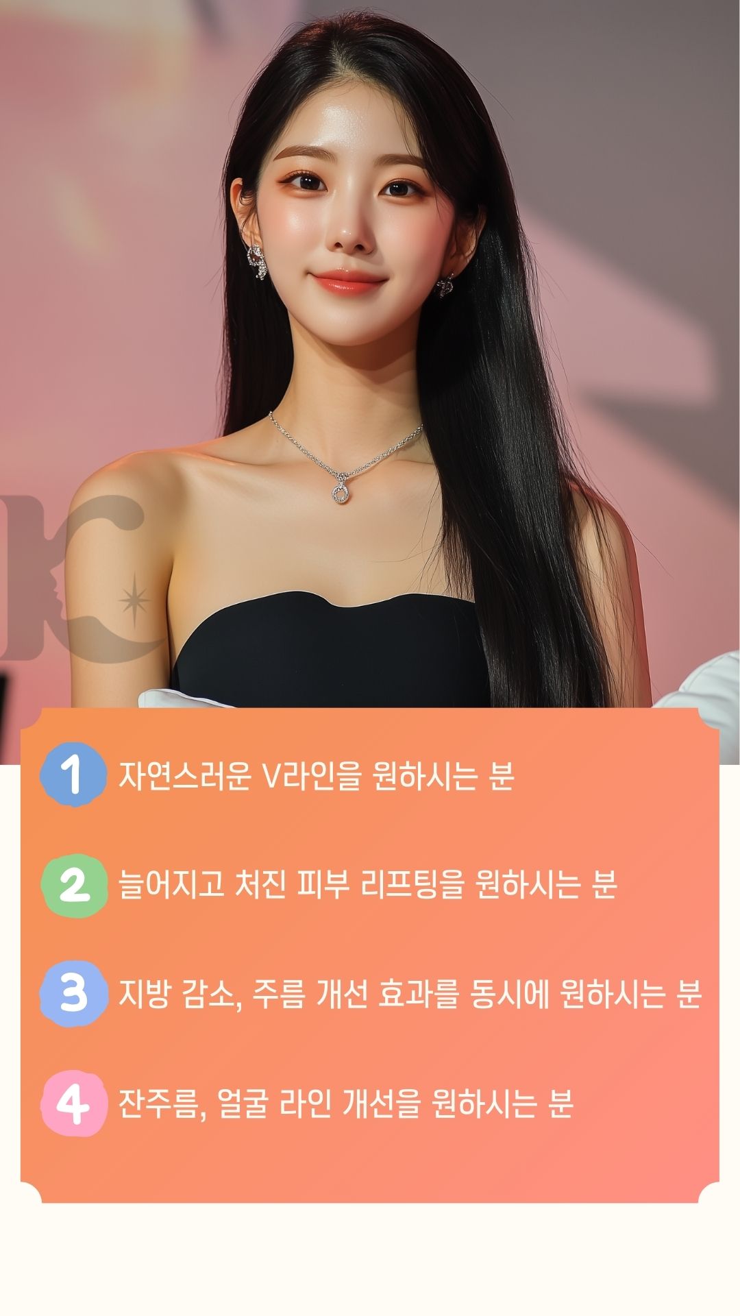 특히 턱선과 볼라인을 선명하게 만들어 주어, 더욱 젊고 매력적인 인상을 제공합니다.