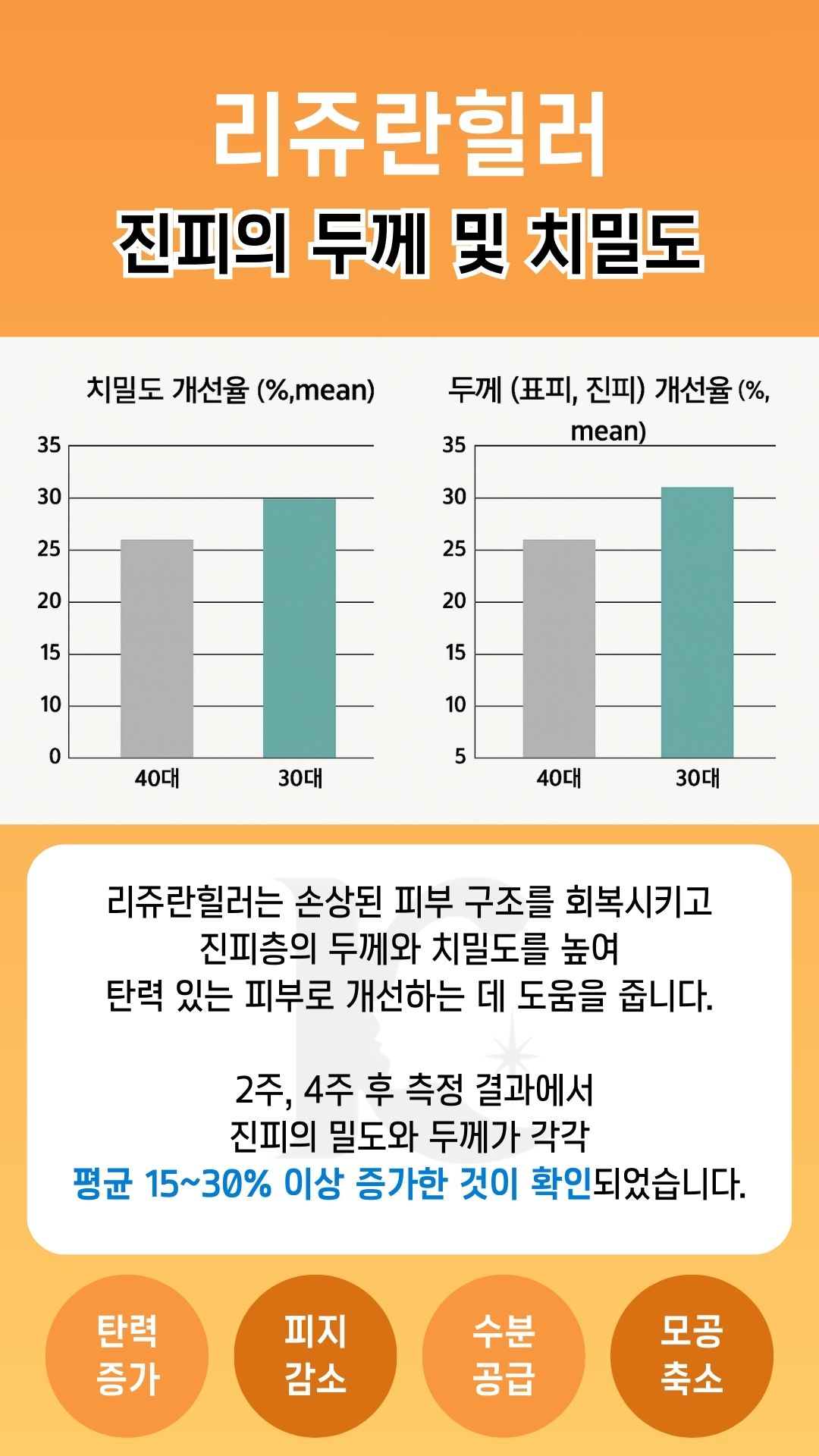 탄력, 주름, 모공 등 다양한 항목에서 긍정적인 변화가 확인되었습니다.