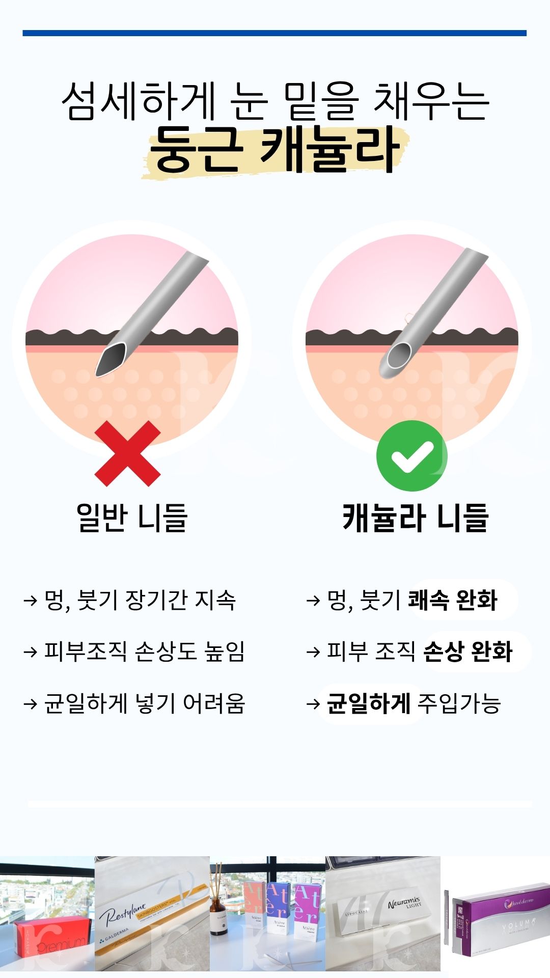 주입 도구: 둥근 캐뉼라 vs 일반 니들